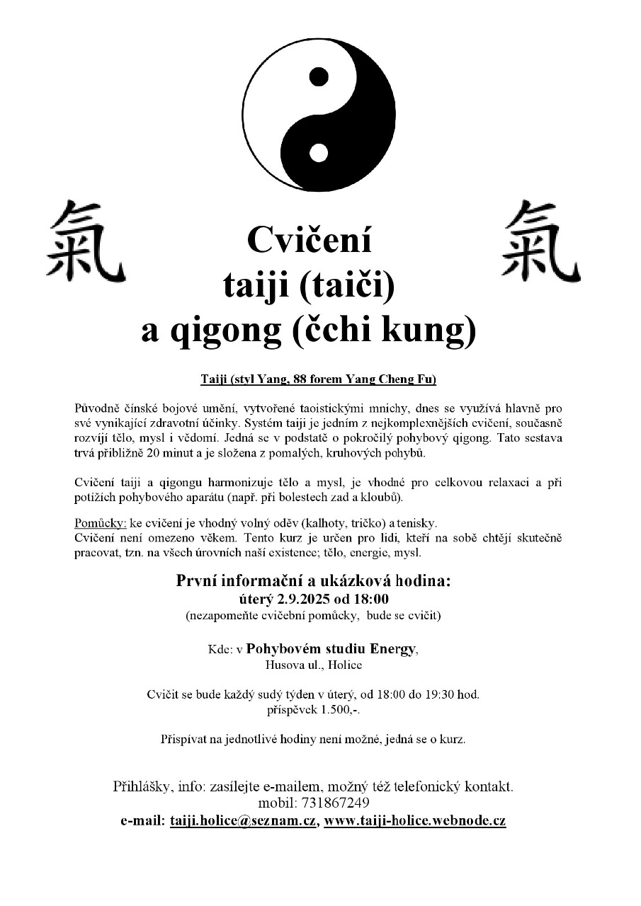 Kurz TAIJI každé SUDÉ ÚTERÝ a PÁTEK